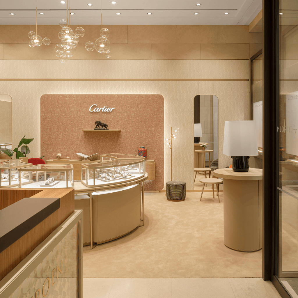 Schaap en Citroen Juweliers en Cartier hebben samen een nieuwe Espace aan de Kruiskade in Rotterdam geopend. De Cartier Espace is een oase van verfijning en vakmanschap. Het interieur weerspiegelt de kenmerkende stijl van Cartier met een harmonieuze mix van warme aardetinten en artistieke texturen. Opvallende elementen, zoals het raffia-behang en de vloeiende lijnen, creëren een uitnodigende en elegante sfeer.