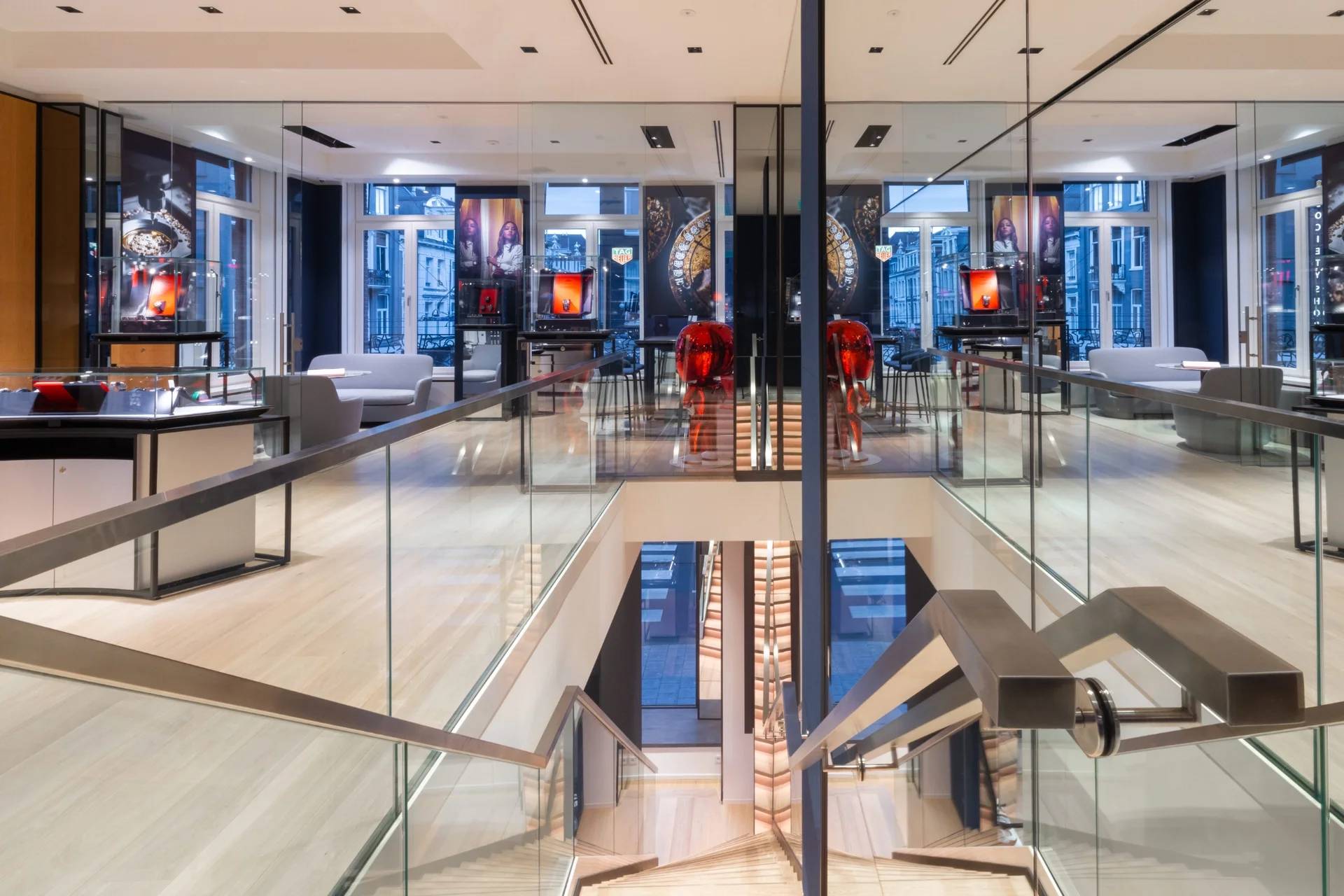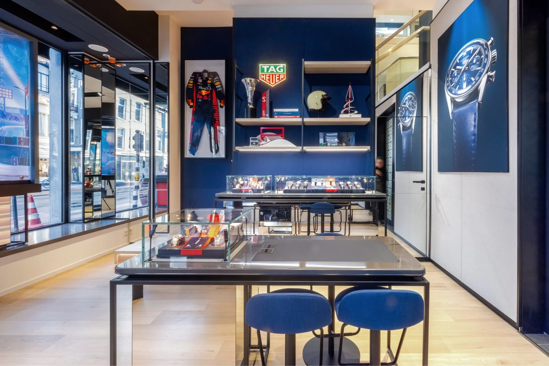 Gelegen in de luxueuze P.C. Hooftstraat, heeft de 86 vierkante meter grote ruimte een boutique met twee verdiepingen waar de nieuwste TAG Heuer-horloges worden gepresenteerd, evenals een uitgebreid assortiment van de meest iconische uurwerken.
