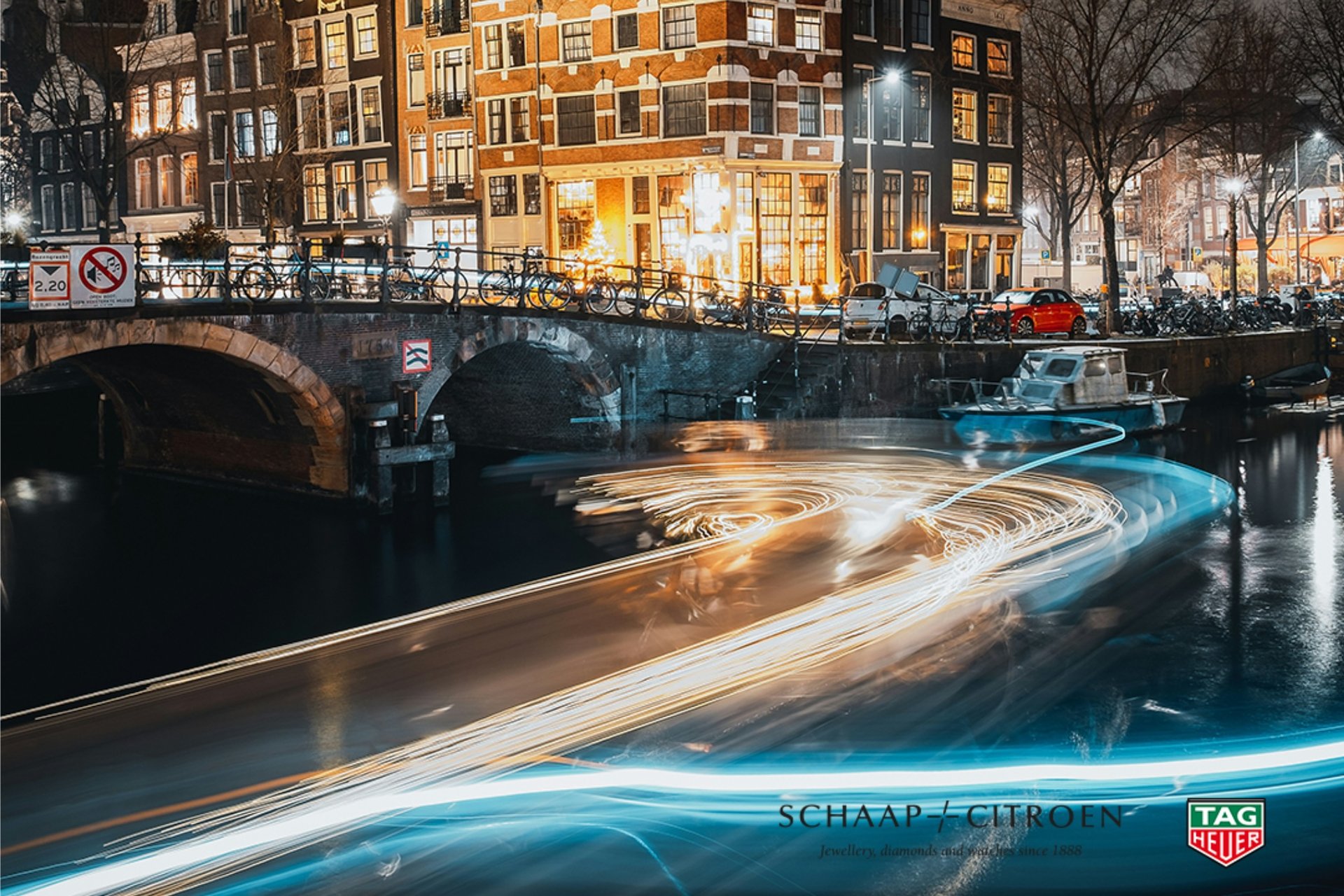 TAG Heuer en de Formula 1 auto van Red Bull Racing maken een rondvaart door de grachten van Amsterdam